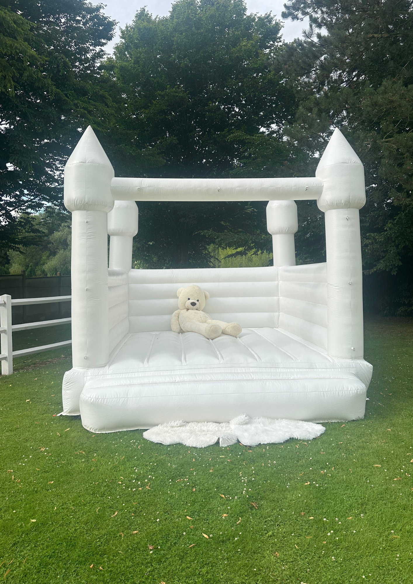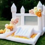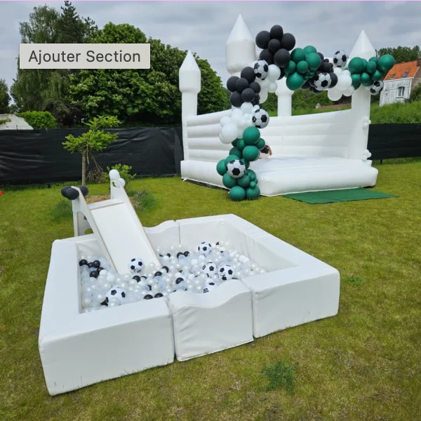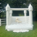 Location château gonflable blanc, jeux et mobilier pour enfants